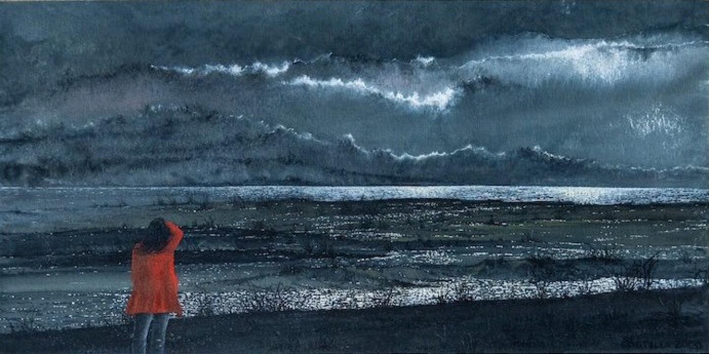 Un certain mystère semble planer dans les tableaux du Chilien. Dans la majorité de ses toiles, on retrouve le même motif que l’artiste explore et renouvelle à l’infini : sa femme, de dos, contemplant l’horizon. Marié depuis 45 ans à l'actrice Geraldine Chaplin, cette dernière est incontestablement sa muse. Sa frêle silhouette, presque toujours vêtue de rouge, semble se fondre dans les paysages marins en directions desquels elle regarde. Ces images hors du temps – l’ensemble des toiles présentées ont été réalisées entre 1998 et 2002 – dégagent une mélancolie et profondeur singulières.